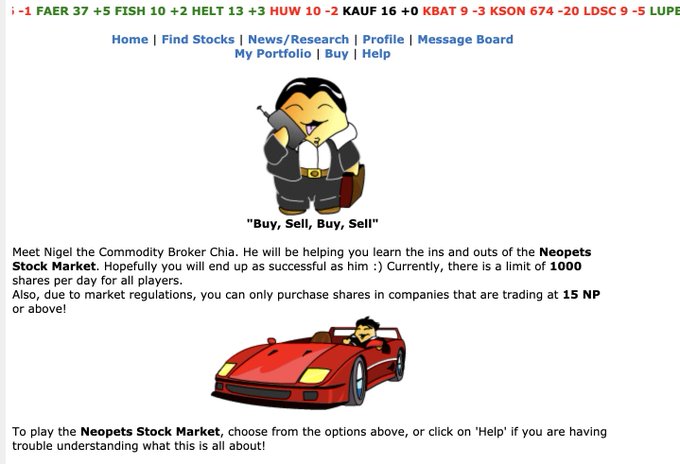 I dont usually check my stock market portfolio because I dont want to be tempted to sell too many stocks before I get the avatar but I looked. The stock market is Neopets greatest Neopoint-making feature now that Habitarium is gone. In the Neopian stock market you can buy and sell shares in 43 different companies.